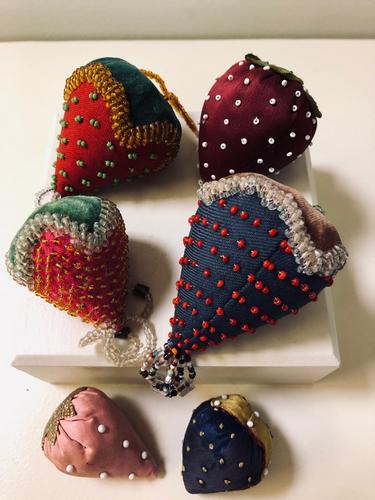 SIX BEADED STRAWBERRY PIN CUSHIONS