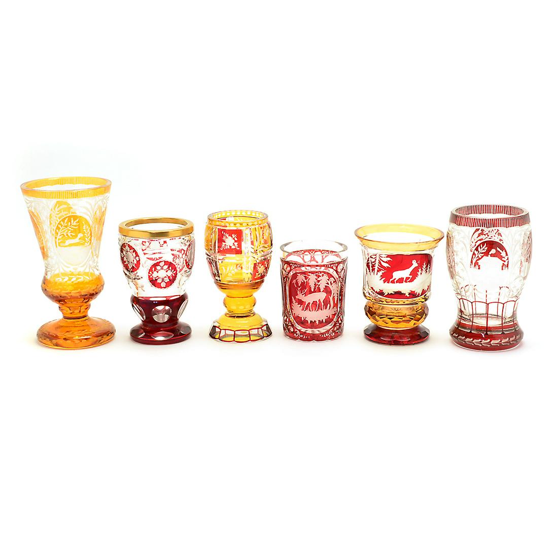 Six Bohemian Glasses.