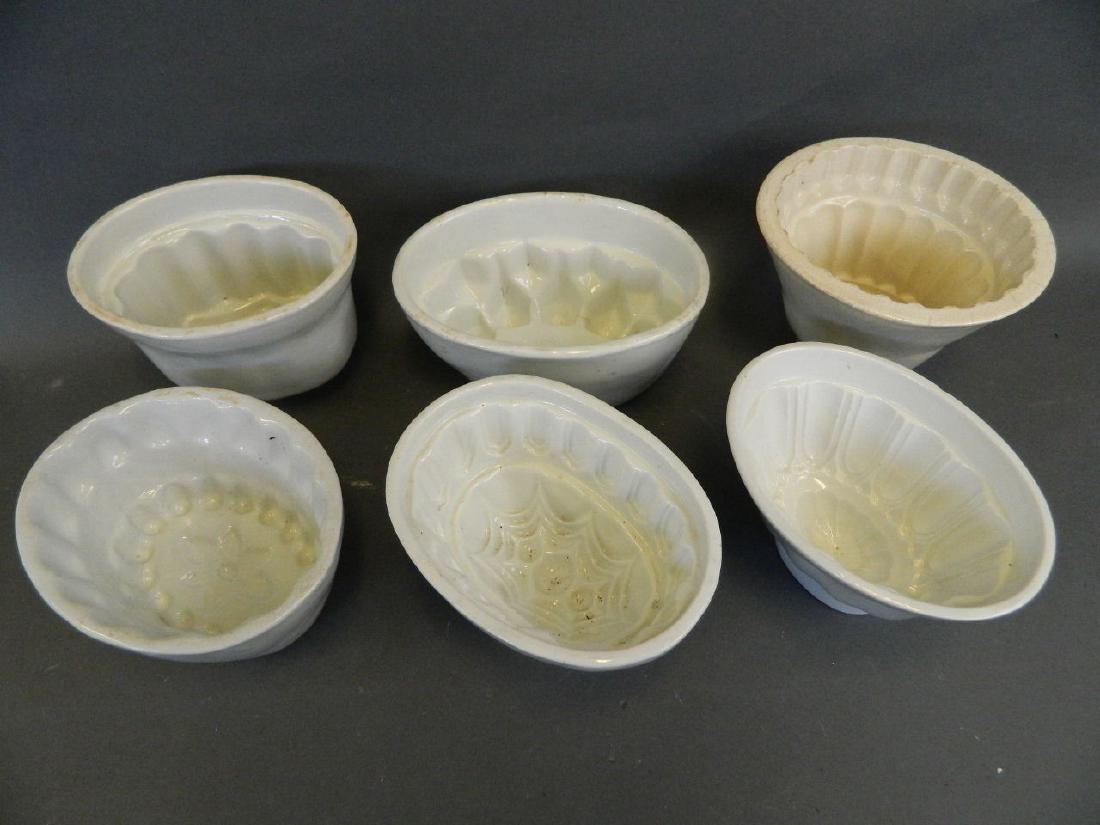 Six C19th ceramic jelly moulds, largest 7" x 4½"