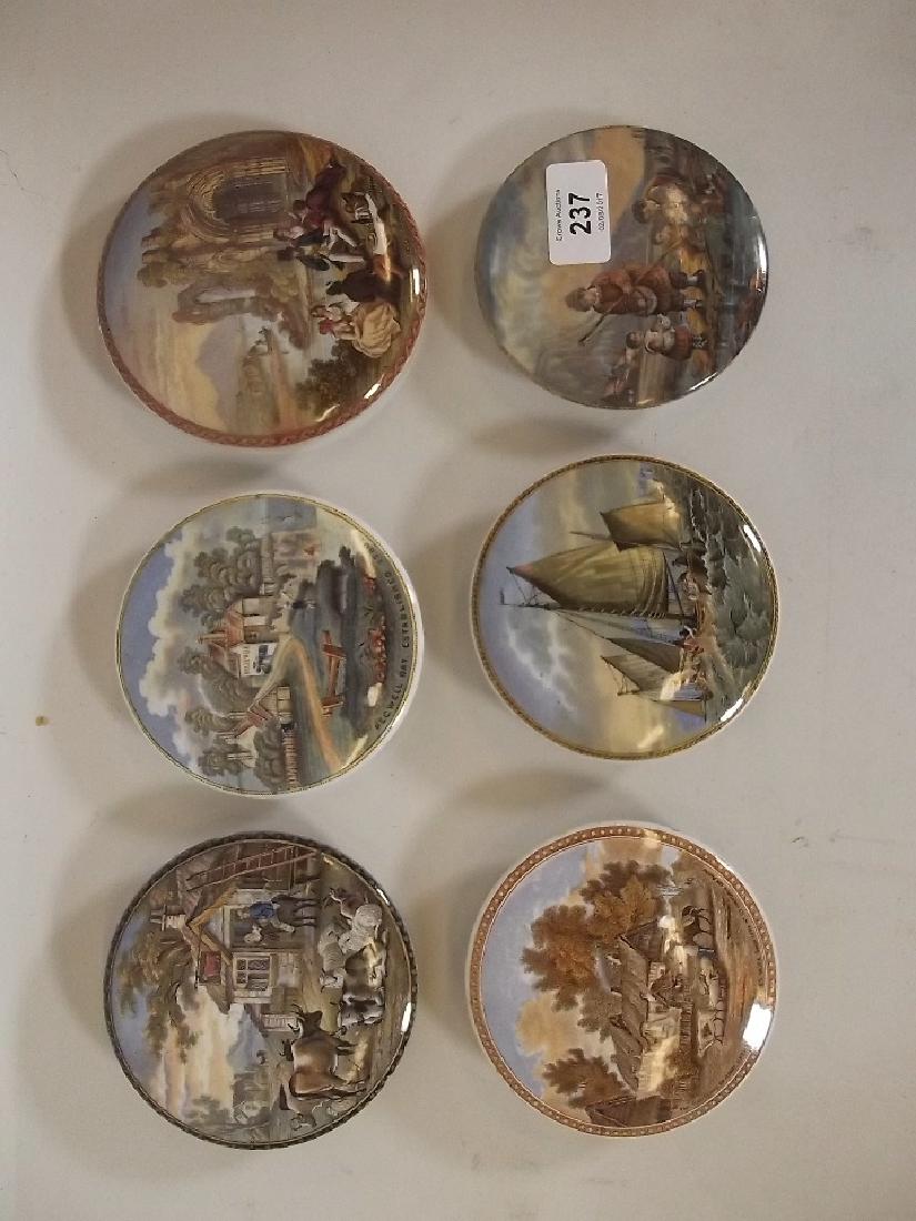 Six C19th Prattware covers, 'Pegwell Bay', 'Hauling in