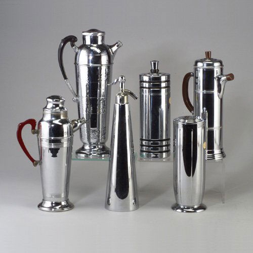 Six chrome cocktail accessories, some wi
