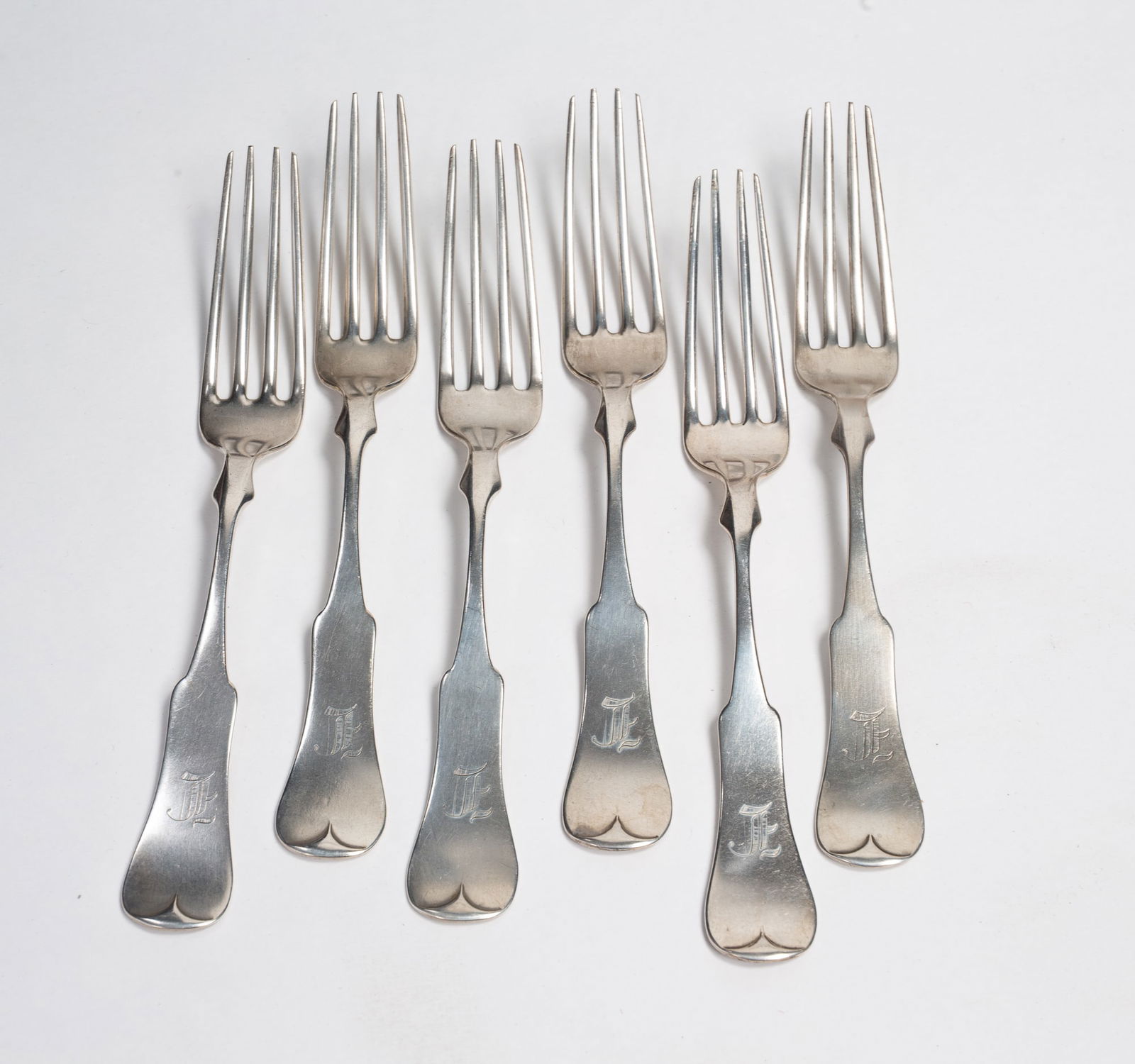 SIX CINCINNATI COIN SILVER DINNER FORKS SIGNED C. OSKAMP.
