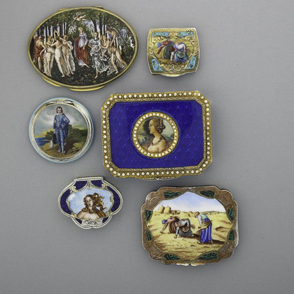 SIX CONTINENTAL ENAMELED SILVER ACCESSORIES