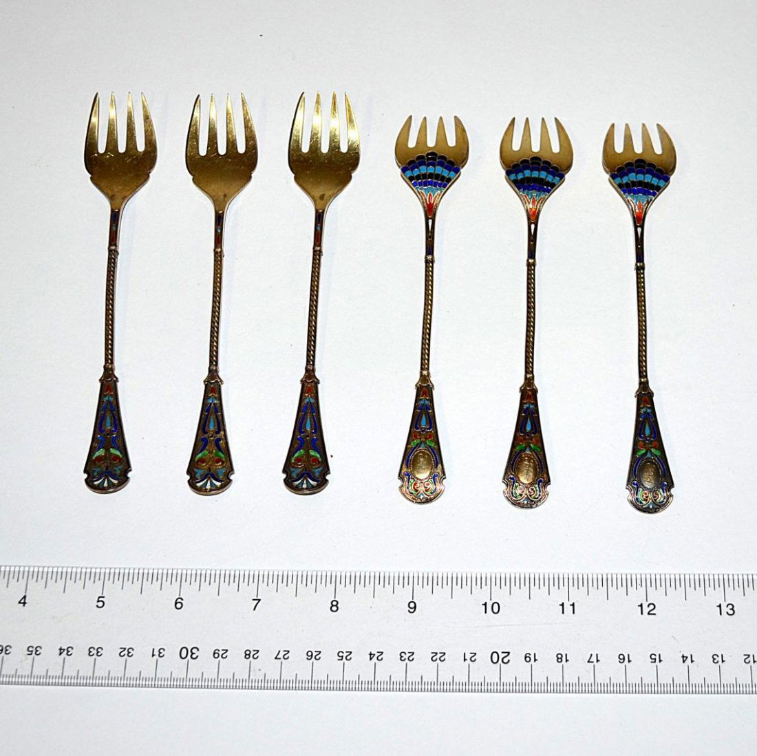 Six Enamel & Silver Monogrammed Forks