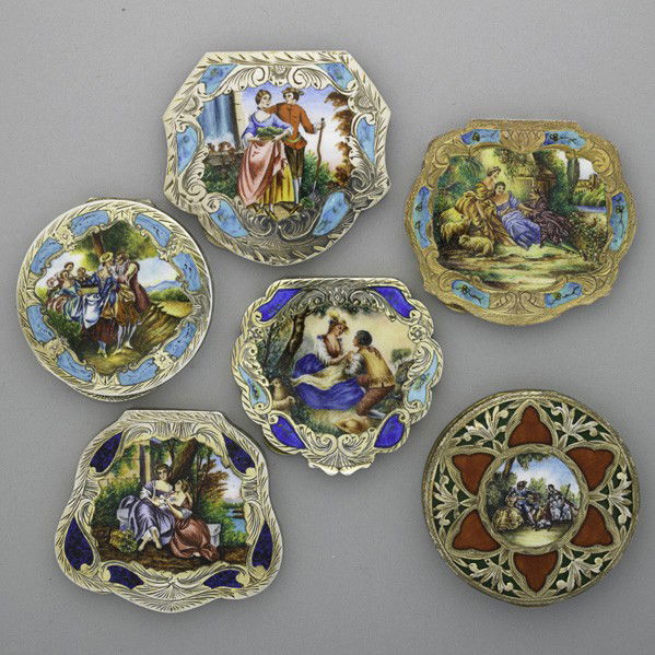 SIX ENAMELED 800 SILVER SCENIC COMPACTS