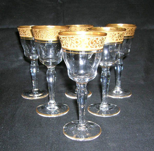 Six Etched Glass Stemware 4"h