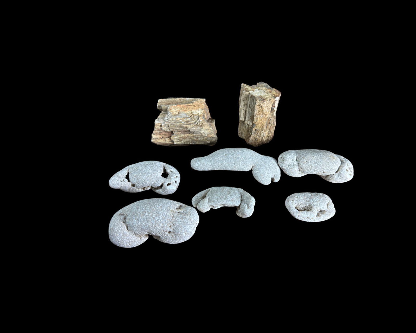 Six Fossilized crabs