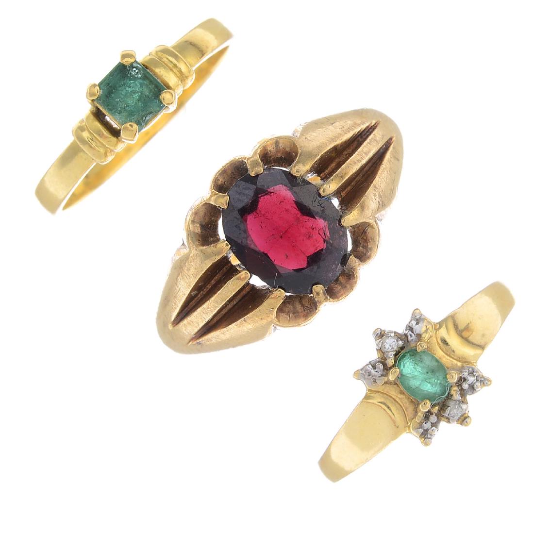 Six gem-set rings. To include a 9ct gold garnet ring, a
