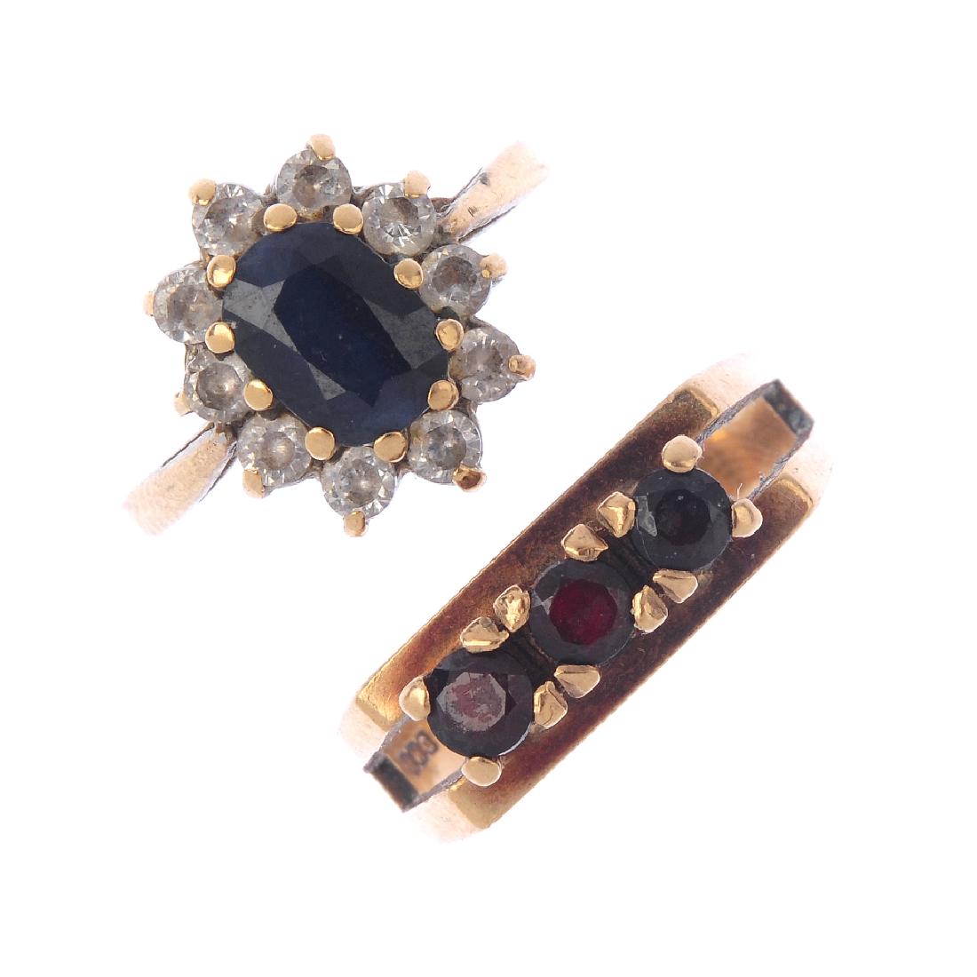 Six gem-set rings. To include a 9ct gold garnet