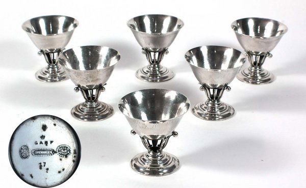 Six Georg Jensen Early Hammered Silver Sherbets