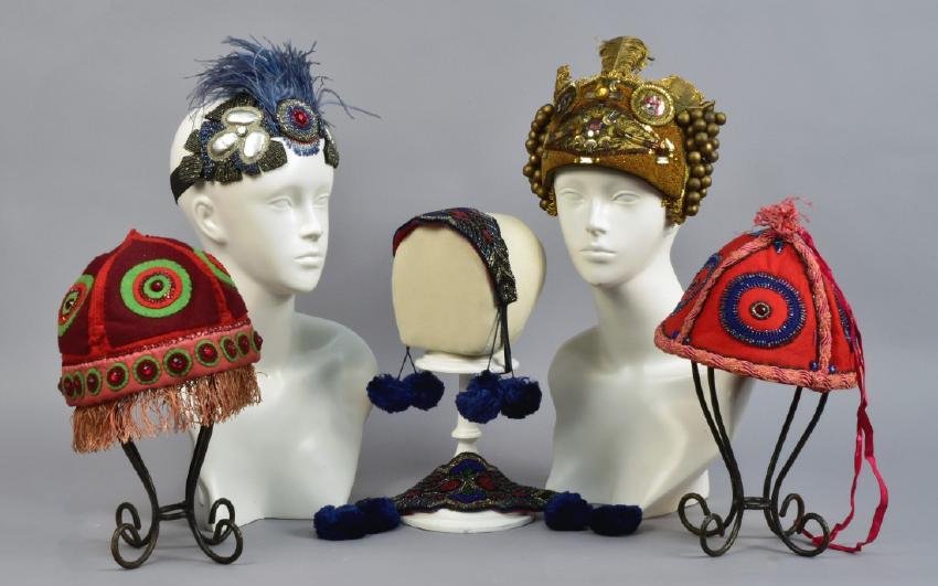 SIX JAMES WARING BEADED HEADPIECES, 1960s
