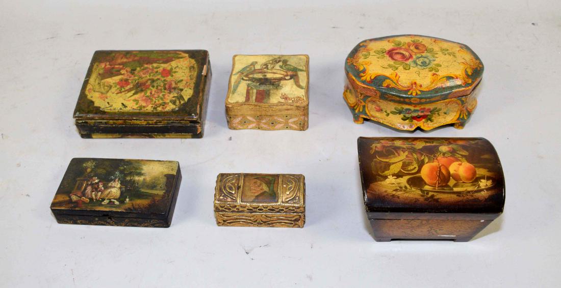 SIX LACQUERED BOXES. Decorated variously with foliage,