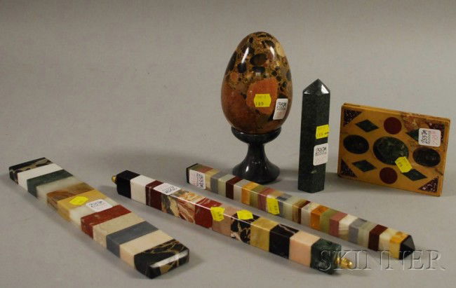 Six Marble and Hardstone Desk and Table Items, inc