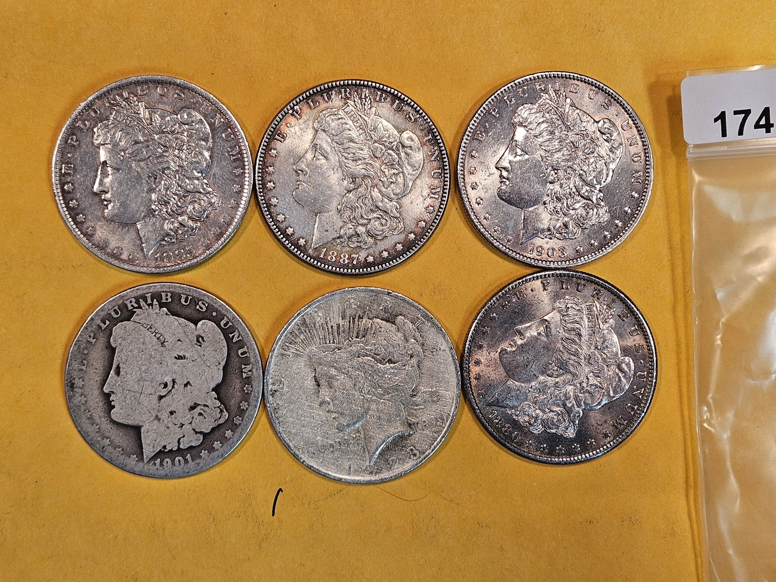 Six Mixed Silver Dollars