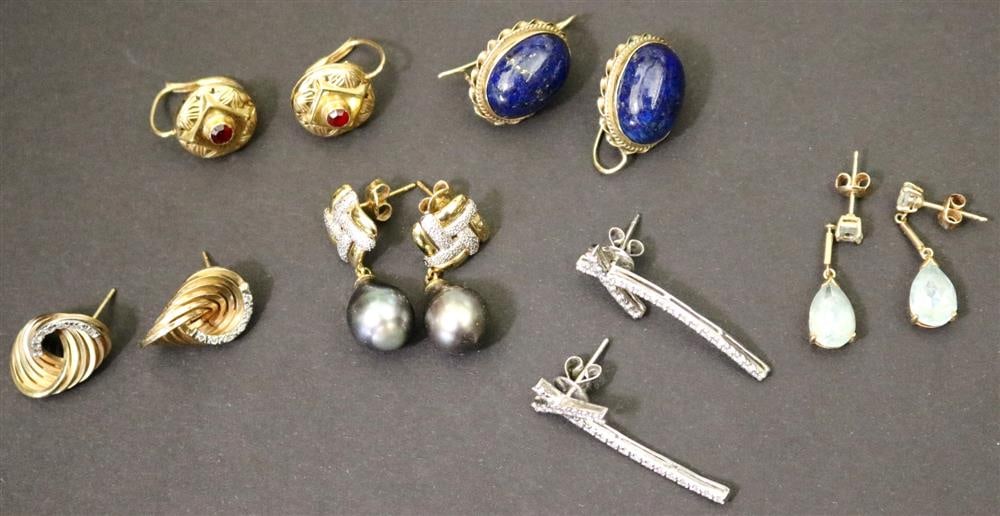SIX PAIRS DELICATE POST/WIRE-BACK EARRINGS.