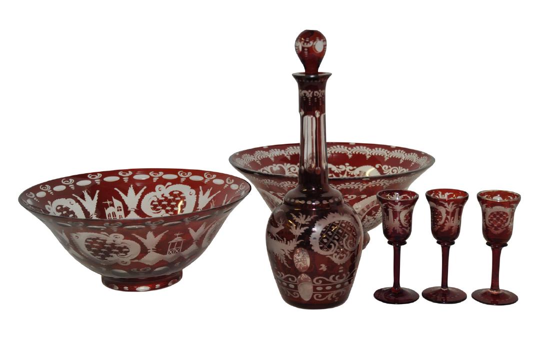 Lot of Six American Art Glass Pieces, Quezal & SteubenMar 14, 2026Lot of 6 Ruby Red Glass ArticlesMar 15, 2026Gorham Decanter, Godinger Crystal and moreFive Vintage Berry Glass Bowls Large And Small16 hrs LeftBohemian Ruby Red Cut to Clear Decanter and Cordials (6)Mar 28, 2026Ruby Red Cut to Clear Glass Assembled Service, 8Mar 12, 2026Bohemian Cranberry Cut to Clear Crystal Decanter Set (4)Mar 28, 2026Bohemian Ruby Cut To Clear and Etching Six Piece Grouping (6)Mar 28, 2026(5) Piece Bohemian Cut to Clear Crystal Decanter Cordial SetMar 15, 2026Ruby Red Cut to Clear Bohemian Stemware (12)Mar 28, 2026BOHEMIAN CRANBERRY GLASS DRINK SET4 days Left(4) ASIAN CERAMIC VASE GROUPING7 days Left6 PIECES OF BOHEMIAN GLASS INC. PAIR OF 9.25" TALL WINE GLASSES, BEAKERS AND GOBLETSMar 15, 2026PAIR OF RUBY GLASS BOHEMIAN DECANTERS4 days LeftWine carafe with 15 Roman glasses,Mar 14, 2026RUBY BOHEMIAN CUT TO CLEAR CRYSTAL CANDLE HOLDERS VOTIVE BOWLS VINTAGE ANTIQUE5 days Left