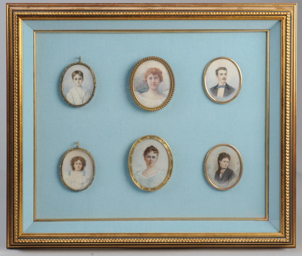 Six Portrait Miniatures in Shadowbox Frame