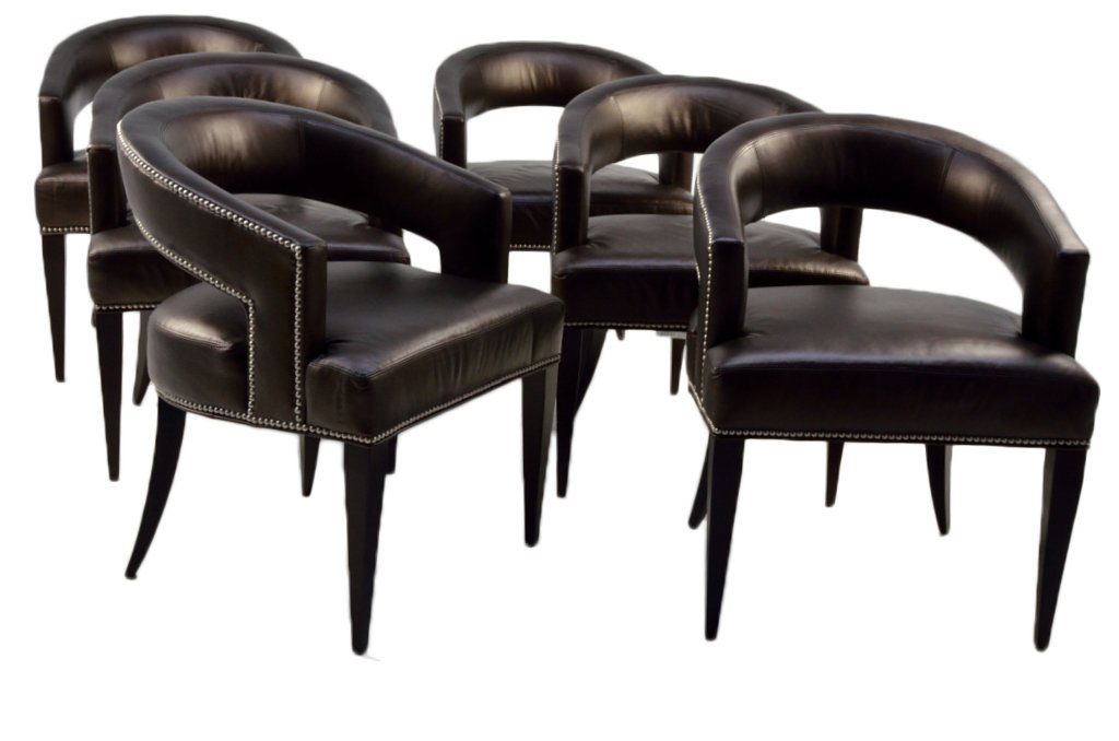 SoldSET OF SIX CONTEMPORARY LEATHER CHAIRSSET OF SIX CONTEMPORARY LEATHER CHAIRS. Height: 31.5 in. by Width: 20 in. by Depth: 17 in.See Sold Price