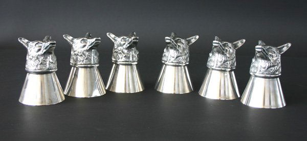 Six Silver Plate Wine Cups w/Wolf Head Base
