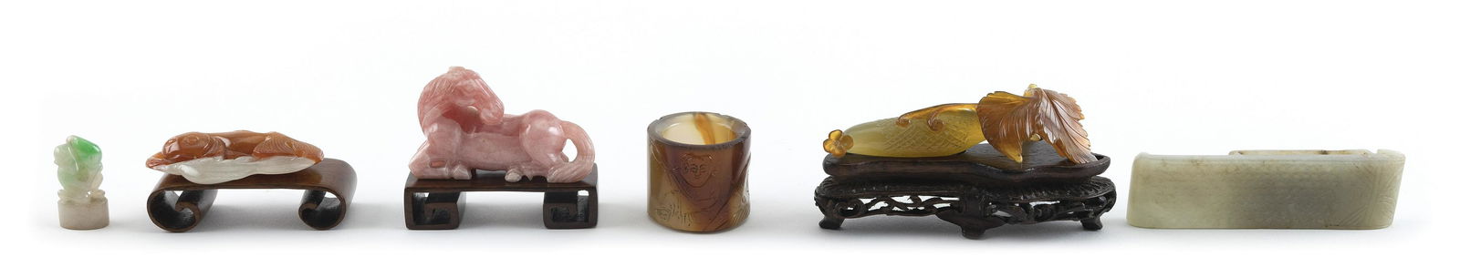 SIX SMALL JADE AND HARDSTONE OBJECTS 19th Century