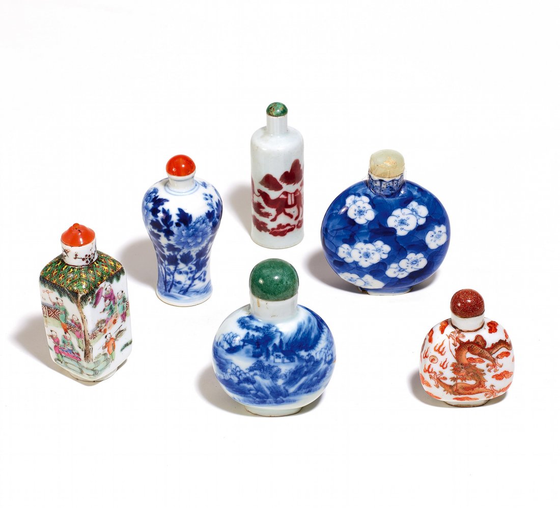 Six snuffbottles in Porcelain