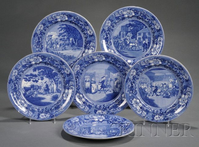 Six Staffordshire Blue Transfer Printed Dr. Syntax