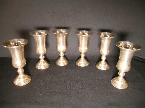SIX STERLING SILVER SMALL STEM GLASSES