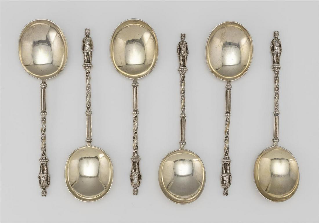 SIX STERLING SILVER SPOONS WITH FIGURAL TERMINALS