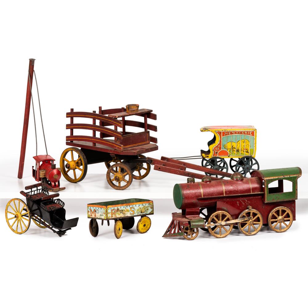 Six Toy Wagons and Trains