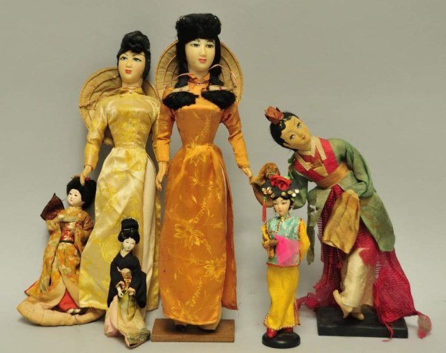 Six Vintage Oriental Dolls