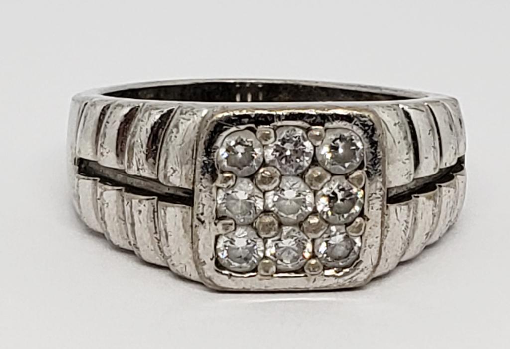 SIZE 12 MEN'S STERLING RING WITH CLEAR STONE