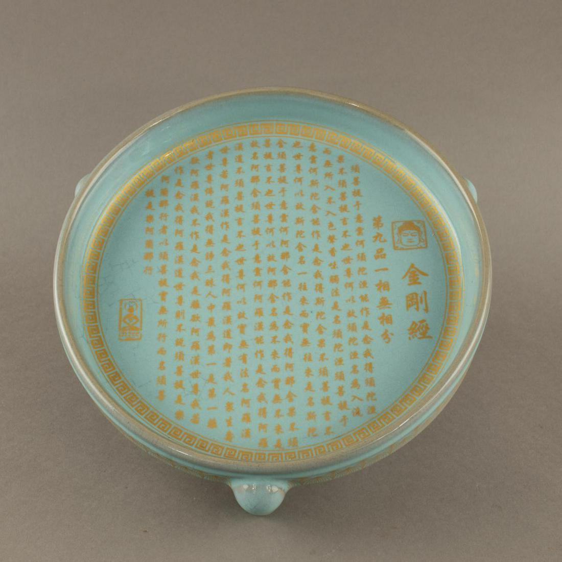 Song Dynasty Ru ware celadon-glazed dish with gilt inscription on the rim depicting the story of HouCJ Auction$60011 hrs Left