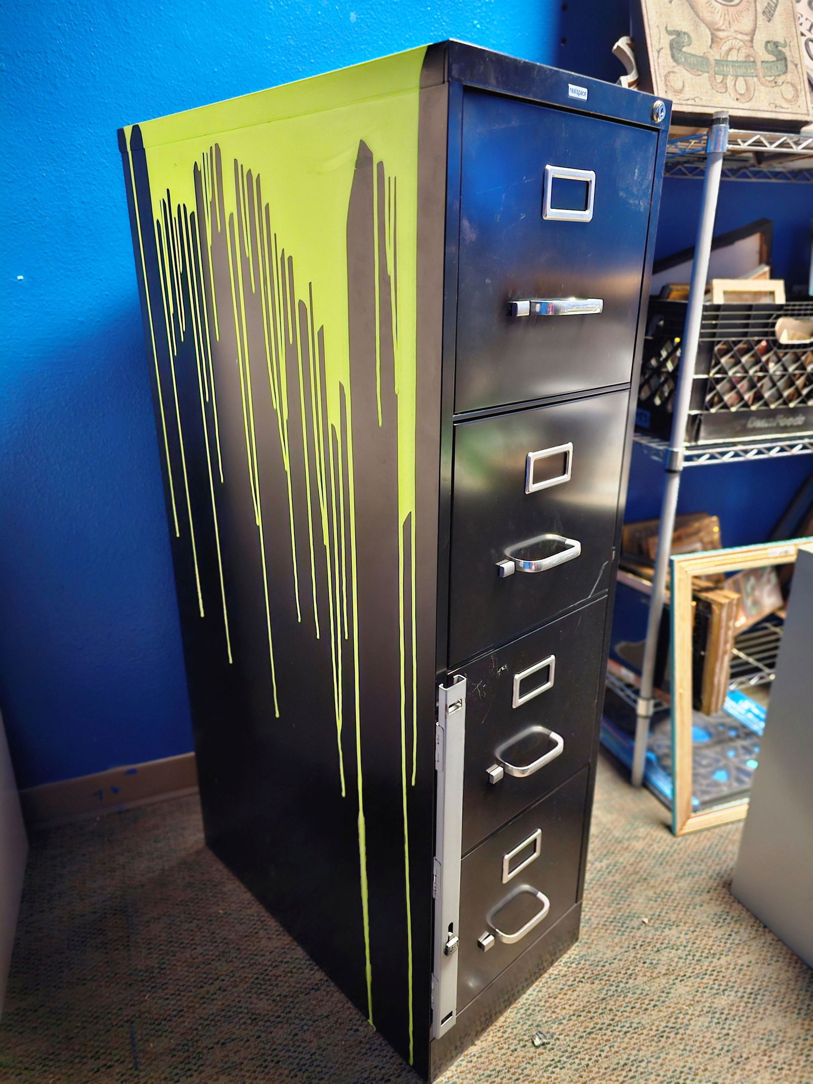 SoldBlack Four Drawer File CabinetBlack Four Drawer File Cabinet Pick-Up will be Thursday Aug 8th & Saturday Aug 10th from 11:00-4:00. Shipped items must have shipping arranged by Saturday, Aug 10th. Items not picked up or without shiSee Sold Price