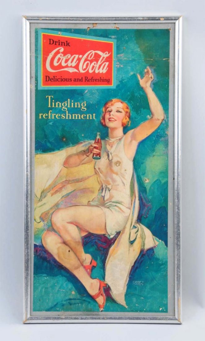 ASSORTED COCA-COLA BEVERAGE EPHEMERA, UNCOUNTED LOT7 days LeftPepsi Cola Double Dot Bottle Topper Sign and Carboard Mirror SignMar 20, 20261950 Drink Pepsi Cola Ice Cold Certified Quality Single Sided Cardboard SignMar 21, 2026Drink Coca Cola "The Pause that Refreshes" Cardboard Sign w/ Wooden FrameMar 20, 20261959 Drink Coca Cola Double Sided Cardboard In Aluminum FrameMar 20, 20261952 Come And Get It Drink Coca Cola Single Sided Cardboard Sign In FrameMar 20, 20261950 Serve Coca Cola Double Sided CardboardMar 20, 20261941 Pepsi Cola Framed Pin Up Girl CalendarMar 21, 2026Coca-Cola "Now For A Coke" Framed Cardboard PosterMar 08, 20261952 What You Want Is A Coke Double Sided Coca Cola CardboardMar 20, 20261940s Coca Cola "He's Coming Home Tomorrow" Cardboard Sign w/ Lady and WagonMar 20, 20261952 Drink Coca Cola "Refresh" 4.5' SST Sign w/ BottleMar 20, 20261926 Coca-Cola Girl With Bottle Oval SignMar 08, 2026ANTIQUE COCA-COLA ADVERTISING TRAY14 mins Left1950 Pepsi Cola More Bounce To The Ounce Single Sided Porcelain SignMar 21, 20261943 Pepsi Cola Self Framed Easel Back Cardboard Pin Up GirlMar 20, 2026