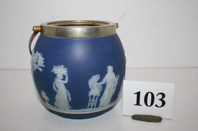 Antique Wedgwood Blue Jasperware Footed Biscuit Barrel