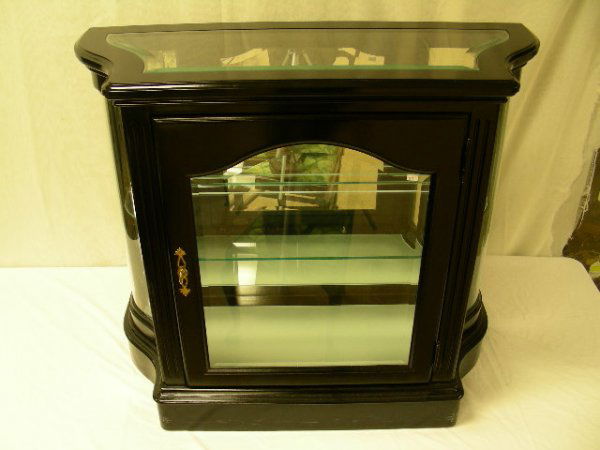 SMALL BLACK LACQUER DISPLAY CURIO CABINET
