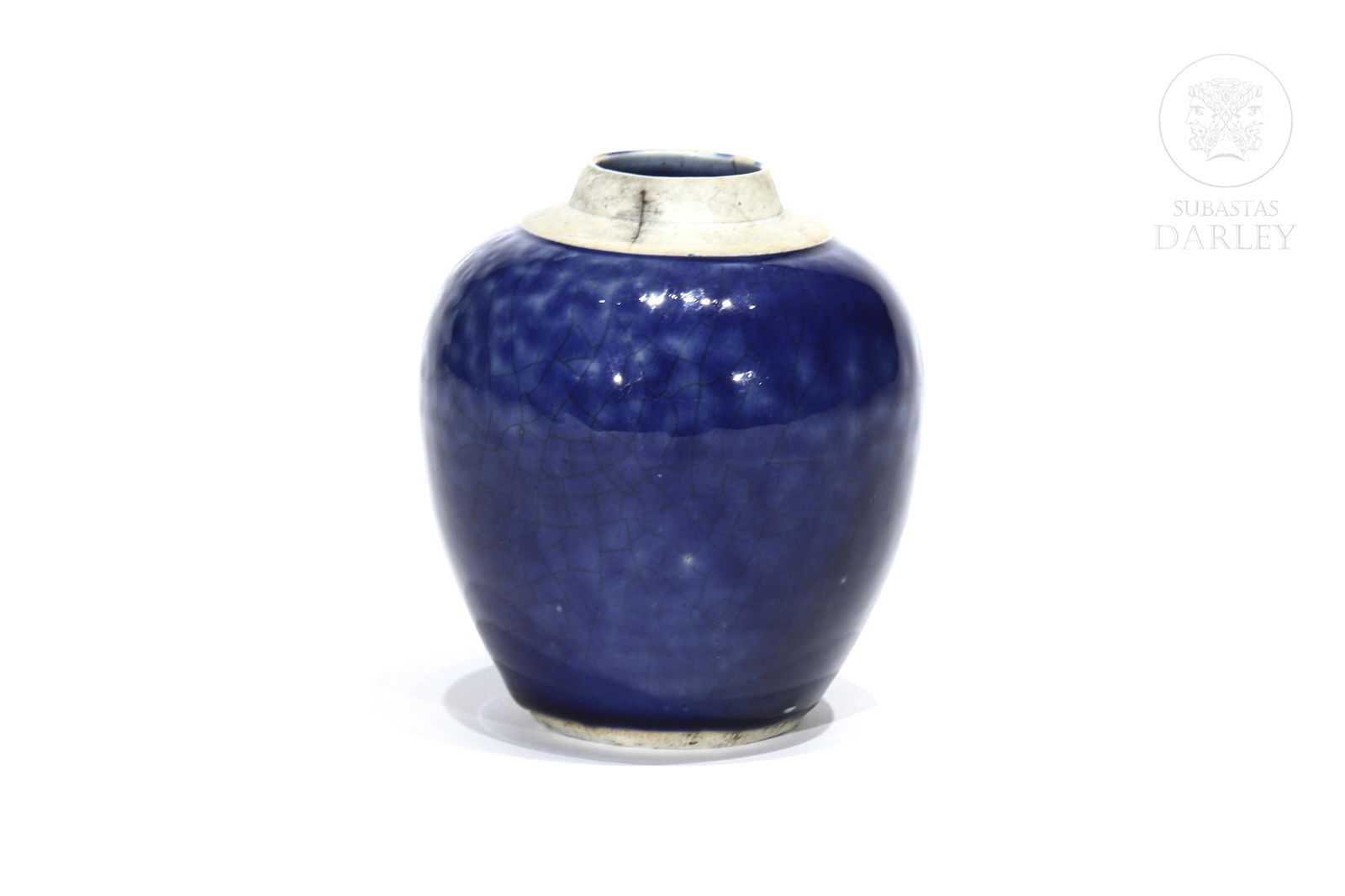 Small Blue Glazed Vase, Without Lid.