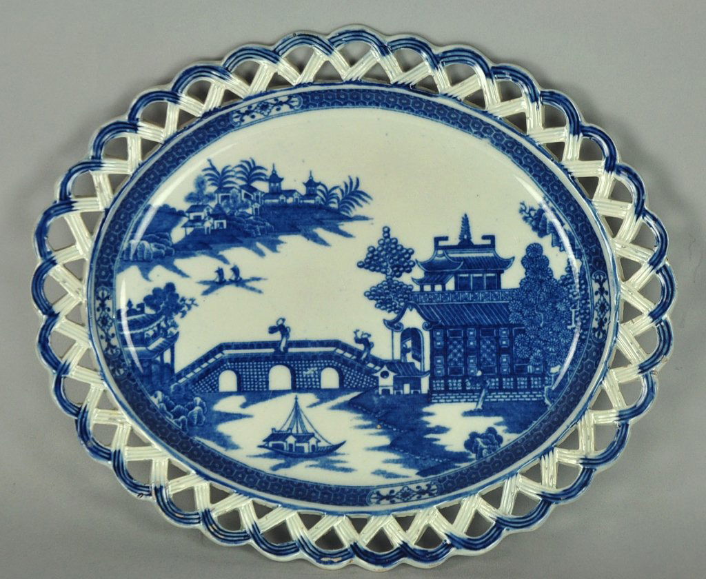 SoldChinese Export Blue Willow Ceramic TrayPierced design tray/dish with Blue Willow pattern. [10 x 8 1/2 x 1 1/4 inches]. Minor chip left edge.See Sold Price