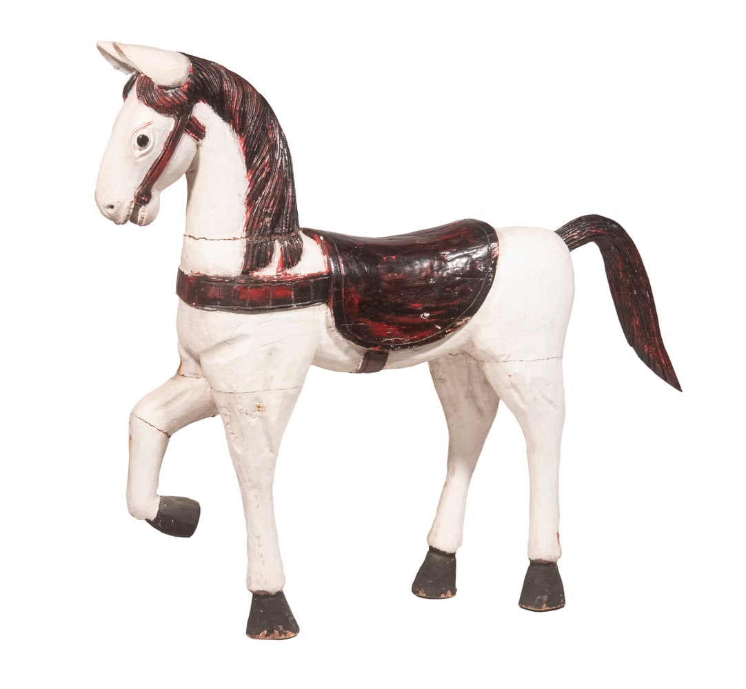 Mid 20th Century Carved Wooden Carousel Horse, Painted in Metallics, With Original Wooden Base and MAMERICAN FOLK ART CARVED AND PAINT-DECORATED GALLOPING CAROUSEL HORSE. 56"h. 10.50"w. 54"l.Mar 19, 2026Vintage Wooden Hand-Carved Carousel HorseBlue Stone Tang Dynasty Painted HorseMar 16, 2026Early Rocking Horse in Black Paint4 days LeftPainted Pottery HorseMar 16, 2026A Chinese Tang Style Terracotta HorseMar 15, 2026Large Carousel Type Horse FigureMar 21, 2026G.A. DENTZEL CAROUSEL CO. JUMPER HORSE ON STANDMar 25, 2026A Chinese Potrry Horse Tang Dynasty 618-907Mar 27, 2026ANTIQUE WOODEN HORSE7 days LeftANTIQUE WOODEN HORSE7 days LeftCarved and Painted Wood 'Prancer' Carousel HorseMar 15, 20261930s Wooden Rocking Horse with Painted Saddle and Red PatinaMar 23, 2026Allan Herschell Carousel HorseMar 28, 2026Chinese Tang Dynasty Terra Cotta Horse15 hrs Left