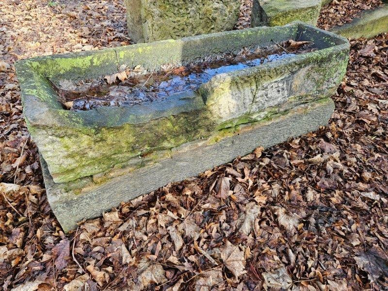 Small carved water trough & base stone