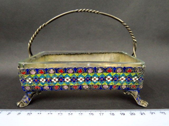 Small centerpiece, silver 84, with artisan enamel work,