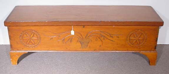 SMALL CHERRYWOOD CARVED AND DECORATED TRUNK