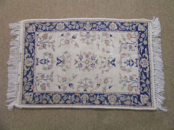 SMALL DECORATIVE WOOL ORIENTAL RUG WHITE BLUE