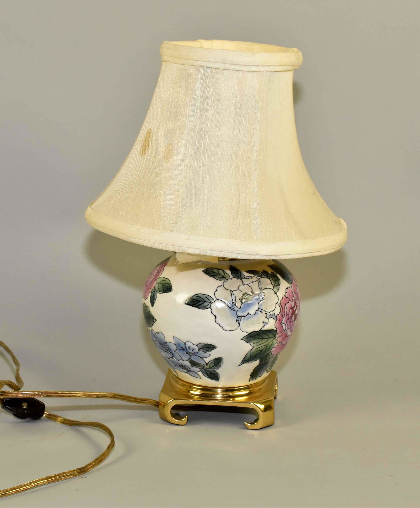 VINTAGE TABLE LAMP WITH GOLD PAINTED FLORAL DESIGN
