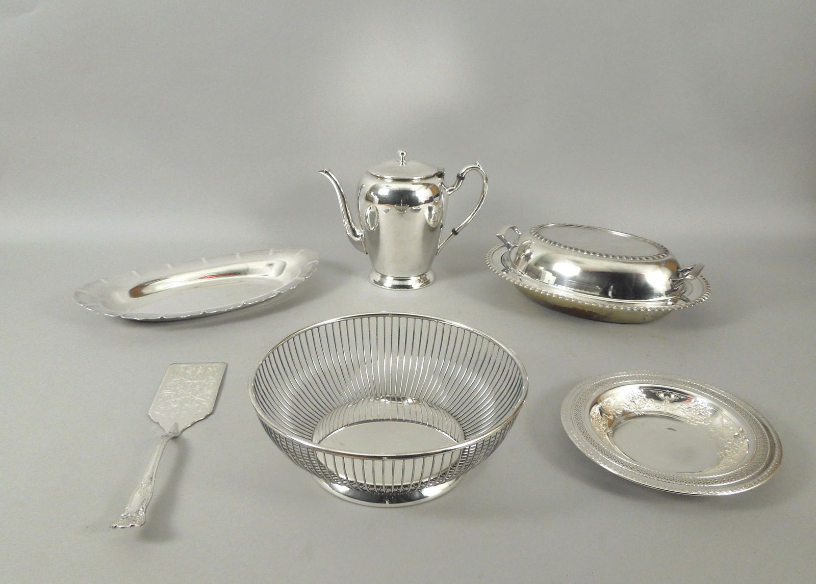 Lot Silver Plate ItemsMar 04, 2026Lot of Silverplated ItemsMar 04, 202620PC LOT OF STERLING SILVER ITEMS, 44.3 T.O.W.Mar 07, 2026ENGLISH SILVER LUSTRE CERAMIC TEA AND COFFEE ARTICLES, LOT OF SIXMar 04, 2026(4) STERLING SILVER, 800 SILVER, COIN SILVER LOTMar 15, 2026Silverplate Flatware, Tableware and Accessories2 days LeftASSORTED ESTATE SILVER PLATED UTENSILS & TABLEWAREMar 07, 2026Sterling Silver Estate TablewaresMar 05, 2026Reed & Barton, Etc. Silver Plate Tableware, 10 PcsMar 12, 2026William Adams, Etc. Silver Plate Tableware, 8 Pcs.Mar 12, 2026Group of 6 Silverplate Tableware PiecesMar 04, 2026Extensive collection of silver. 800, 835 and 925 silver.3 days LeftCharming Collection Sterling Silver Table Wares4 days LeftENGLISH SILVER LUSTRE CERAMIC TEA AND COFFEE 21-PIECE PARTIAL SETMar 04, 20265 pieces of sterling silver tableware. Largest 9in. 25.4 ozt total weight.5 days LeftGroup of Six Silverplate Serving Pieces, Various Makers, 20th CenturyMar 07, 2026