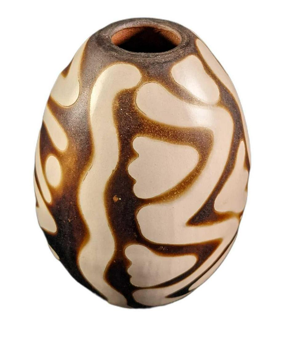 SoldSmall Handpainted Ceramic Pod VaseSmall Handpainted Ceramic Pod Vase. The maker and date of creation are unknown. The vase is approx 3" x 3" x 4 1/2" and weighs under one pound at 0.47lb.See Sold Price
