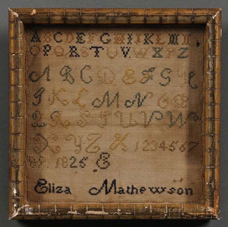 Small Needlework Sampler, "Eliza Mathewson/1825," stitc
