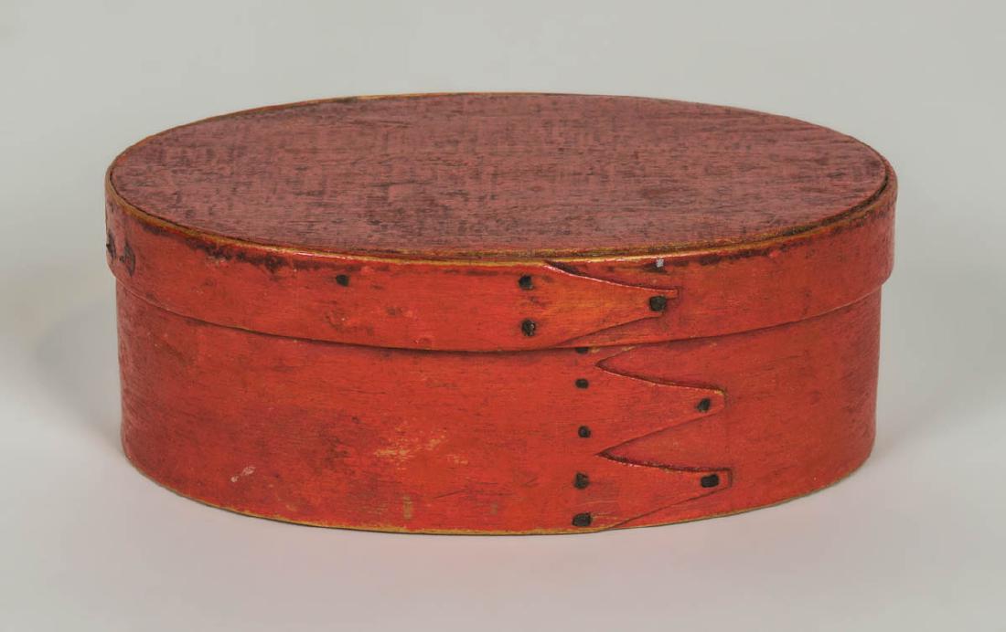 SMALL OVAL BOX Pine and maple, original bright red
