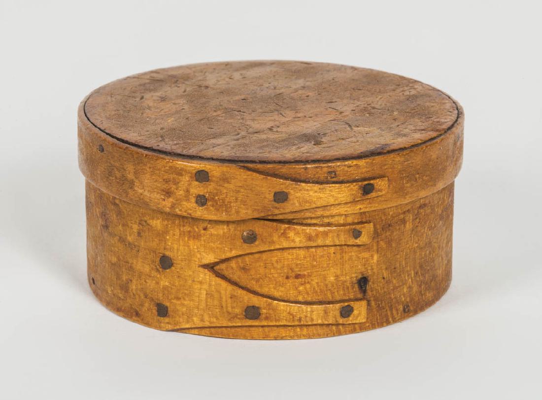 SMALL ROUND BOX Pine and maple, original stained light