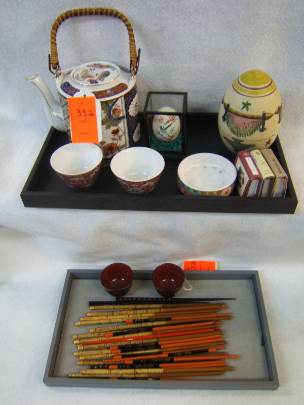 COUNTRY LOT KNIFE BOXES , KNIVES , JUGS , TINSFeb 28, 2026Lot Asian Items - Bonsai Tea Box & More - Pottery Bonsai Planter, 12'' x 9'' x 3.75'' Wooden Yuk16 hrs LeftA Lot of CollectiblesMar 03, 2026(32) JAPANESE PORCELAIN TEA SERVICE & CHINESE FAMILLE ROSE PLATES2 days Left(5) JAPANESE BLACK LACQUER PAINTED TABLE BOXES2 days LeftSet 5 Japanese Calligraphy Porc Teapot & Cups6 days Left(4) JAPANESE LACQUERED TABLE BOXES, 1 WITH MOP INLAY1 day LeftCollection of Vintage Cloisonné, Geishaware & Porcelain TrinketsMar 08, 2026Product Name: Gilded Dragon and Tiger Leaping Teapot Set19 hrs LeftCollection of Assorted Asian Ceramics.Japanese studio ceramics Four various items, possibly MashikoGroup of Miscellaneous ItemsMar 07, 2026A Chinese/Japanese Tea SetFeb 27, 2026Artist Materials Japanese and Chinese Literature Grouping (8)Mar 28, 2026Name: Three-Legged Lingzhi Teapot Set18 hrs LeftGroup of Asian/Misc. Decorative Arts